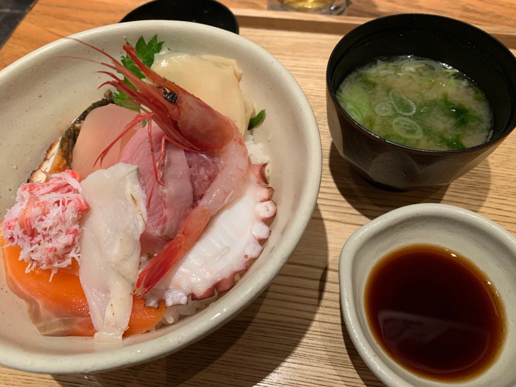 Dinner: Seafood rice bowl & 1 small (this time!) beer 1550 yen $16.80