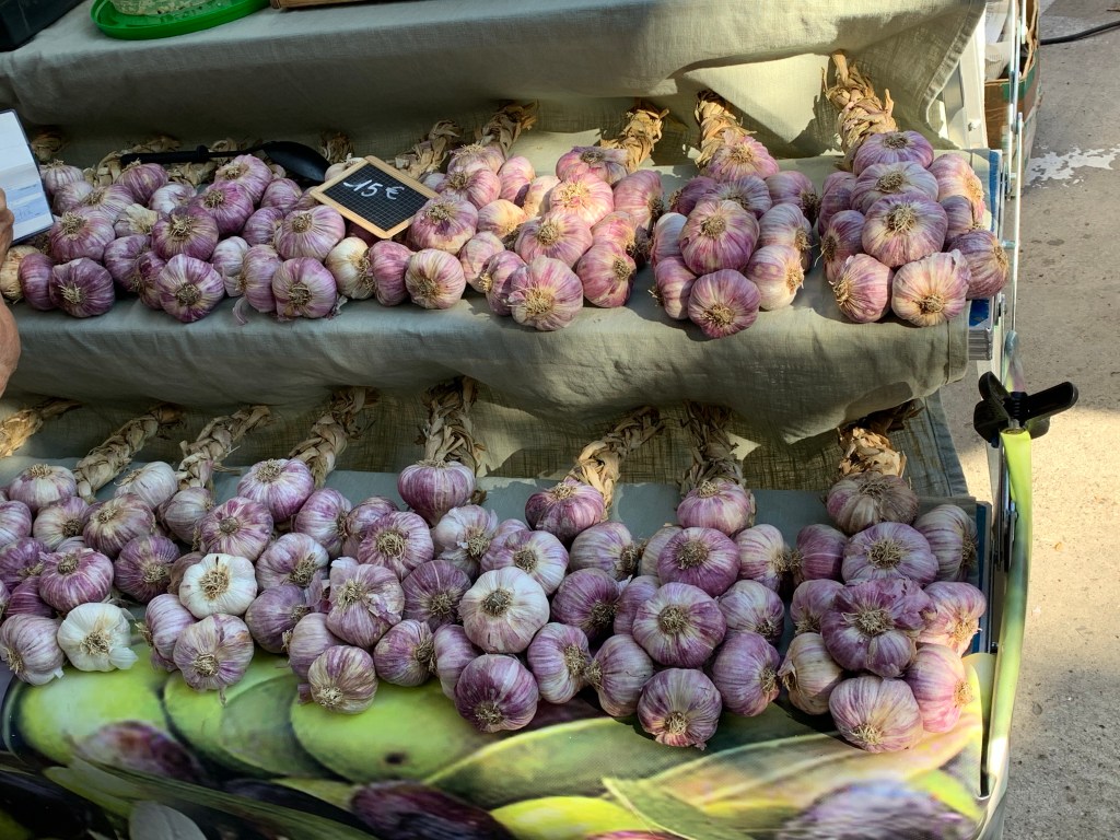 The markets ran in Bonnieaux this morning and we were surprised as to how big they were for such a small town. Our stroll down to the boulangerie for breakfast took a whole lot longer and the line up to order was out the door. Clearly the boulangerie is geared up for days like these, because they got through us fairly quickly. So once coffee and croissant were consumed it was time to browse the market!