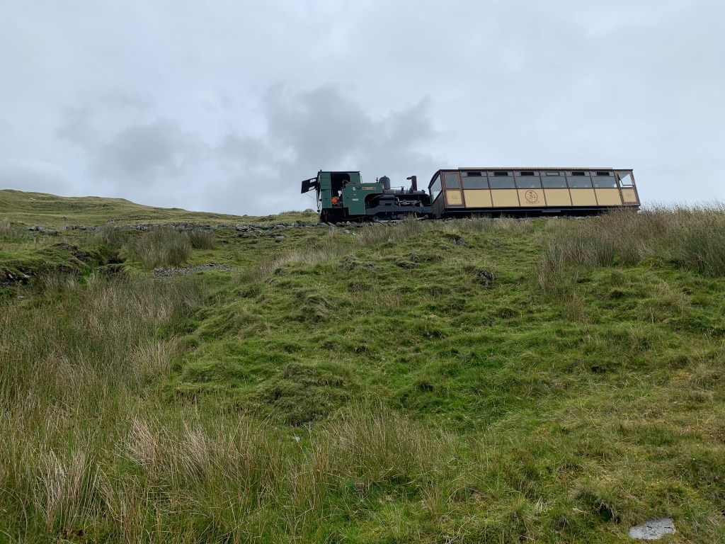 Sensibly, there is a train that you can take up to the top of Mount Snowdon, on special grasp tracks so that the tiny hard working engine won’t slip backwards.