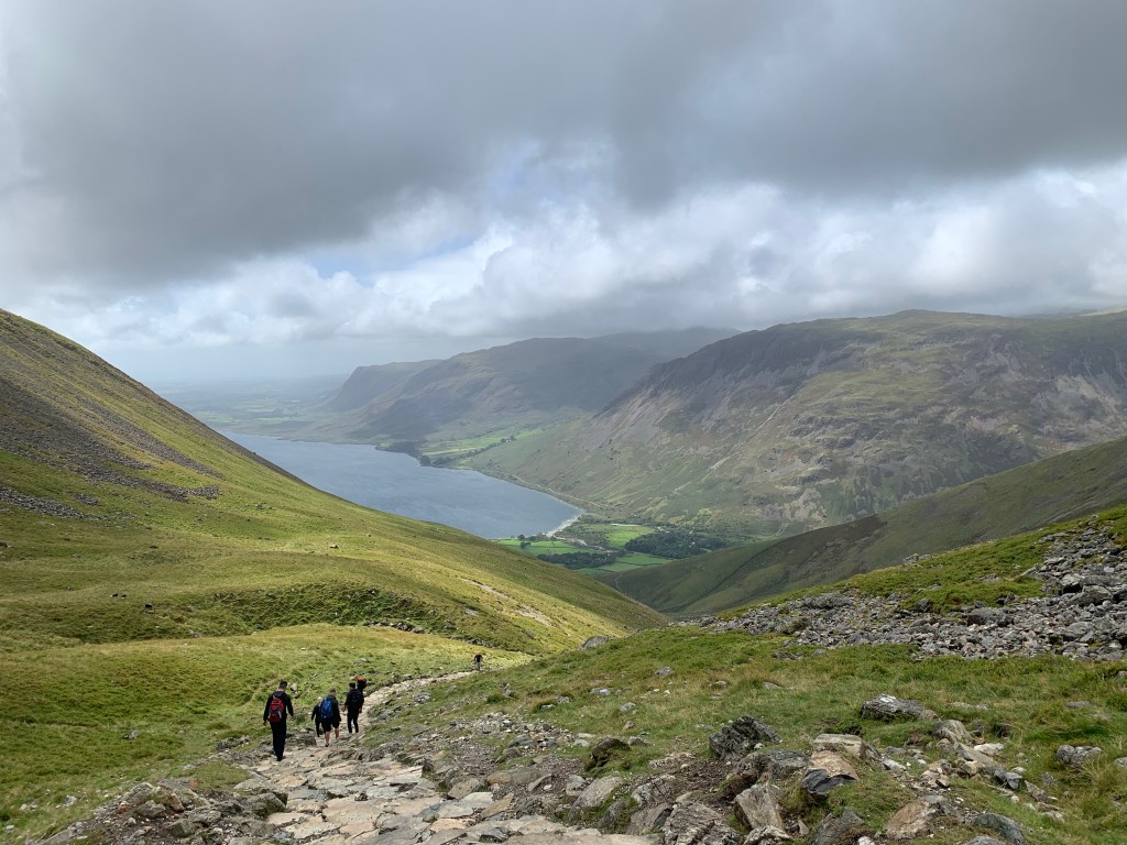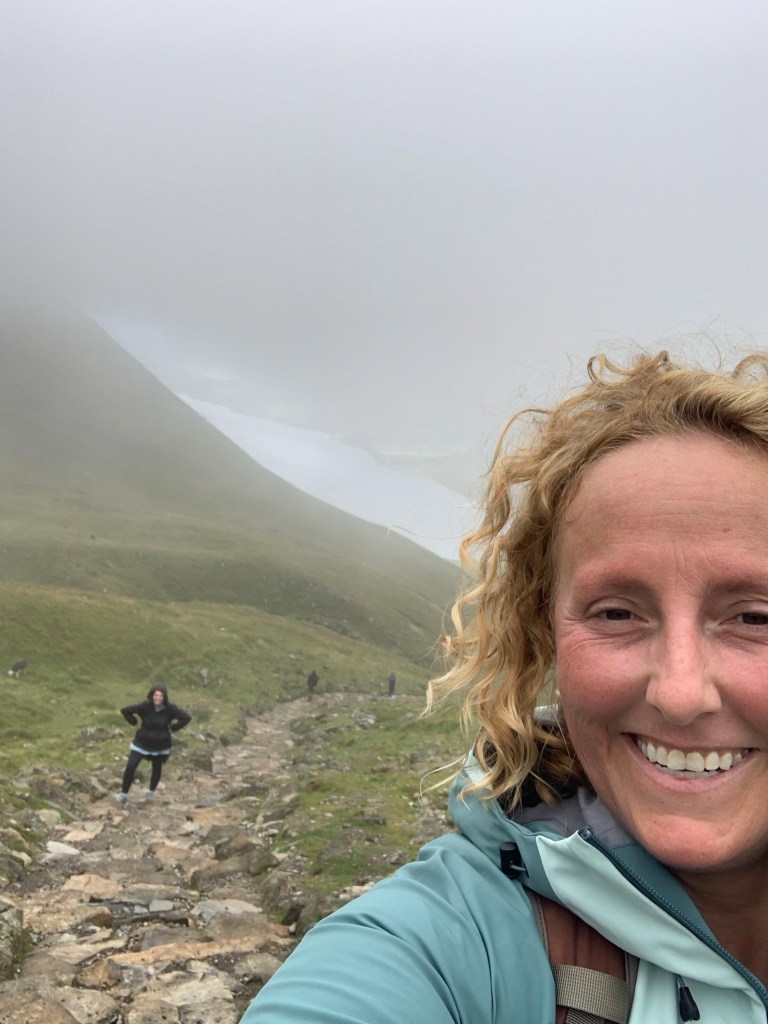 Scafell is known for being a bit of a scrappy scrabble at times, it’s also known for being windy. So when Lesley’s phone said it was going to be windy, we just hoped that it wasn’t in the same measure as Storm Antoni….. It was. We had 65-75 mph winds that tended to make things a bit difficult! At times you’d lift your leg to move it forward and it would get blown out to the side…. So it was a bit on the gusty side!!