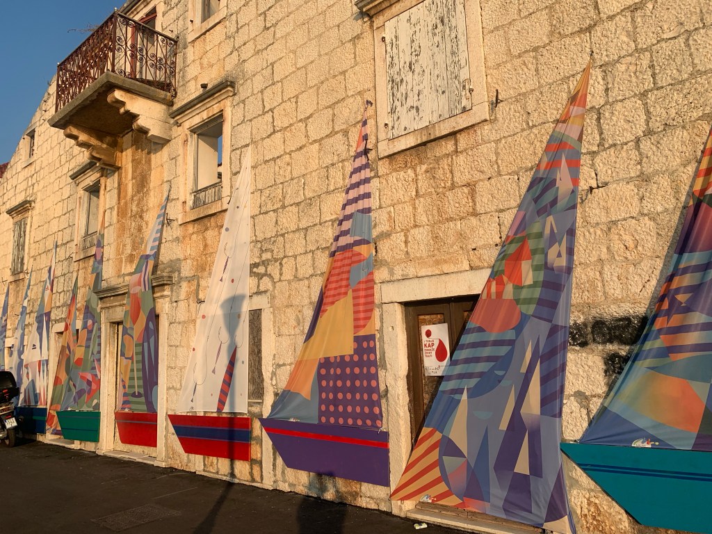 We chugged up the coast from Hvar to the island of Brač and stopped in the port of Bol. Known for having the Golden Horn of the Adriatic, it’s a white pebble beach in the shape of a horn (roughly) and due to strong currents, it’s never pointing in the same direction.