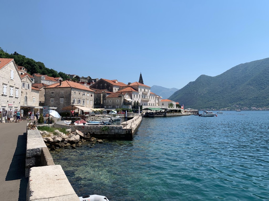 It was a good time to walk the Old Town, because there was still shade to walk in, so it wasn’t too hot and there was only 1 cruise ship in town at that time. After the obligatory ice cream (basil and lemon, you should definitely try it!), we headed around the Bay of Kotor.