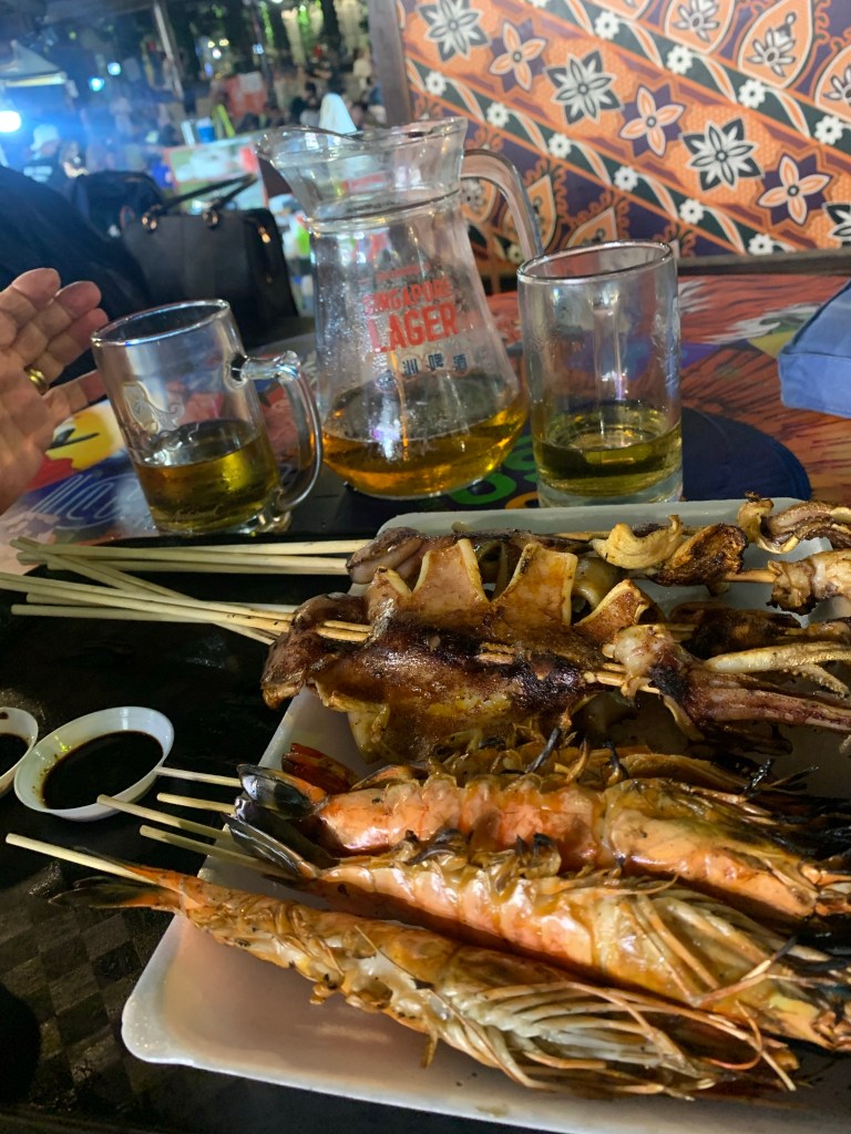 After the refreshing swim (which Mum argued against, stating “she couldn’t be bothered”!), we headed back to the Lau Pa Sat Food Markets for some grazing. We started with a Michelin rated Laksa and then just continued to eat from there…….!