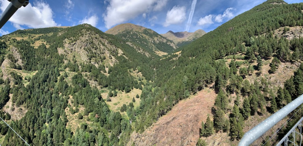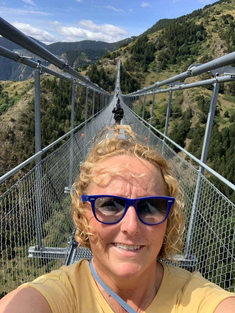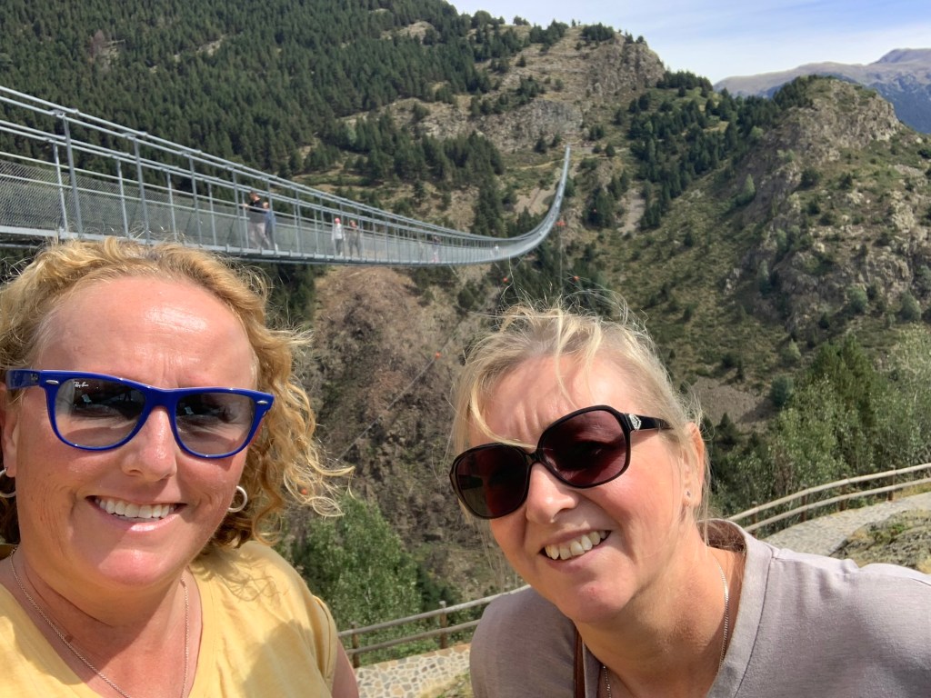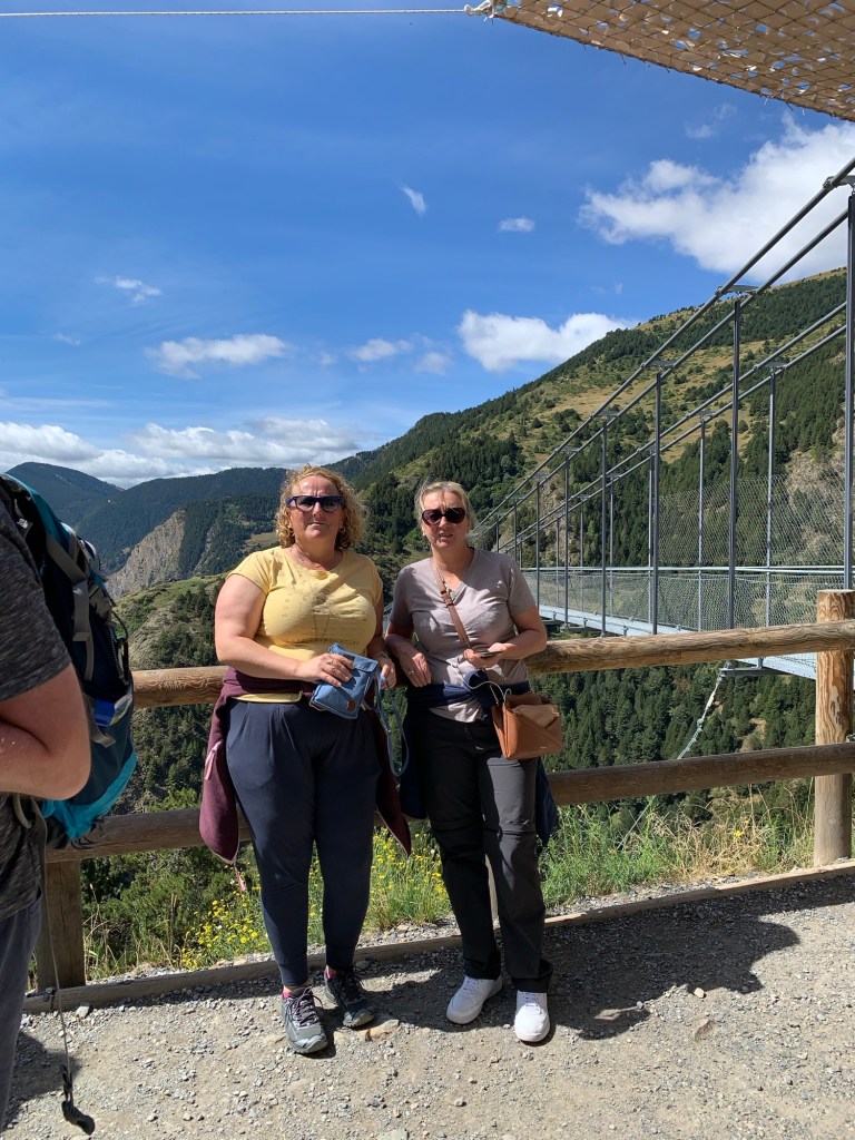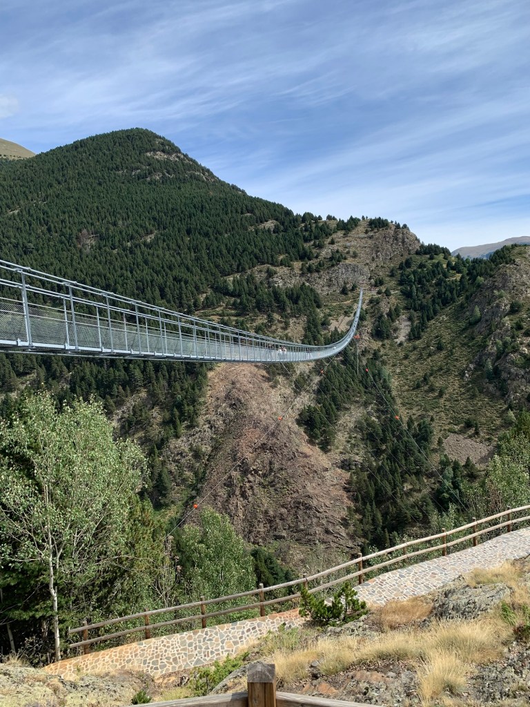 From Encamp we headed up to Canillo to cross the Pont Tibetà Canillo suspension bridge. Lesley has a fear of heights, but was keen to force herself to walk the Pont Tibetà Canillo. She’s done many height adventures, bungee jumping, zip lining etc, so she regularly pushes her fear boundaries!