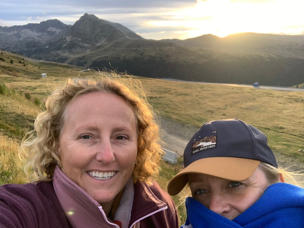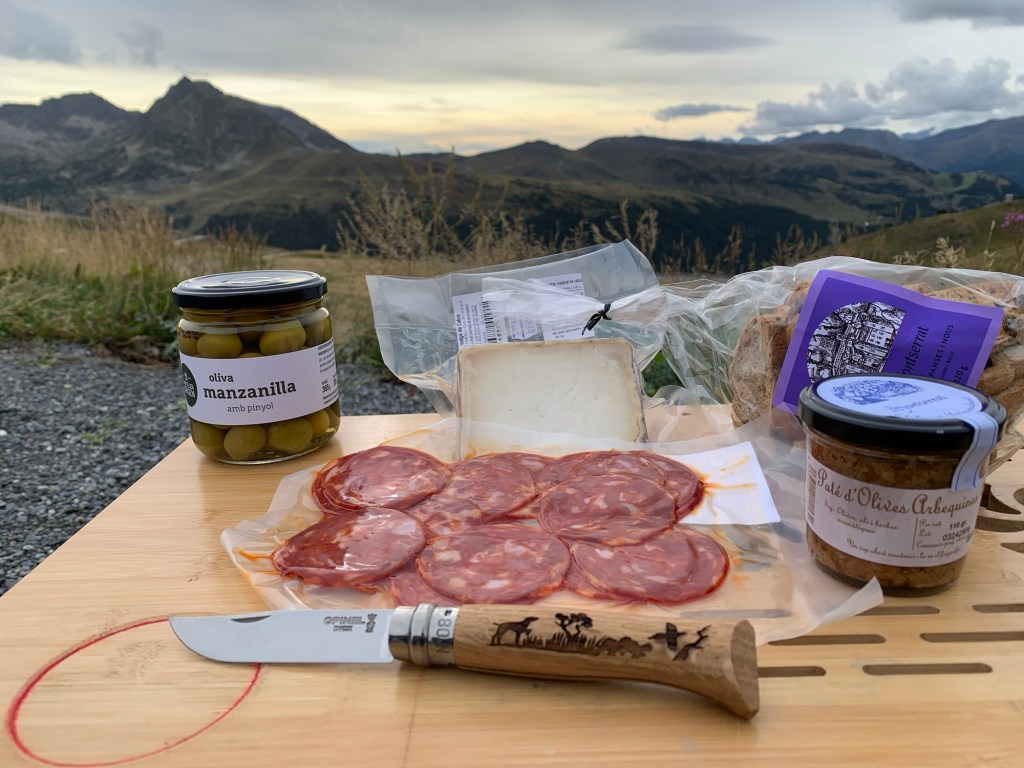 Finding camp for the night tonight was a bit of a challenge, as there have not been a lot of places to pull off to the side of the road. However we have found a stunning spot, just short of El Pas de La Casa and the French border. We are at 2,300m in altitude, it’s very nippy and we will be going to sleep Sound Of Music style, listening to cowbells. Dinner was made up of local olive tapenade, goats cheese, home cured salami and rosemary almonds and a $3.15Eu bottle of wine (remember that tax haven….. good for cheap booze!). Snooze well all, tomorrow is the Pyrenees and France! Xxx
