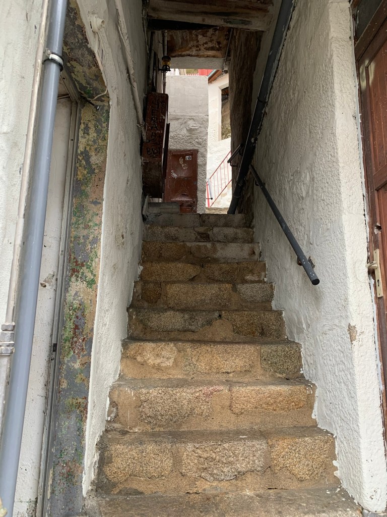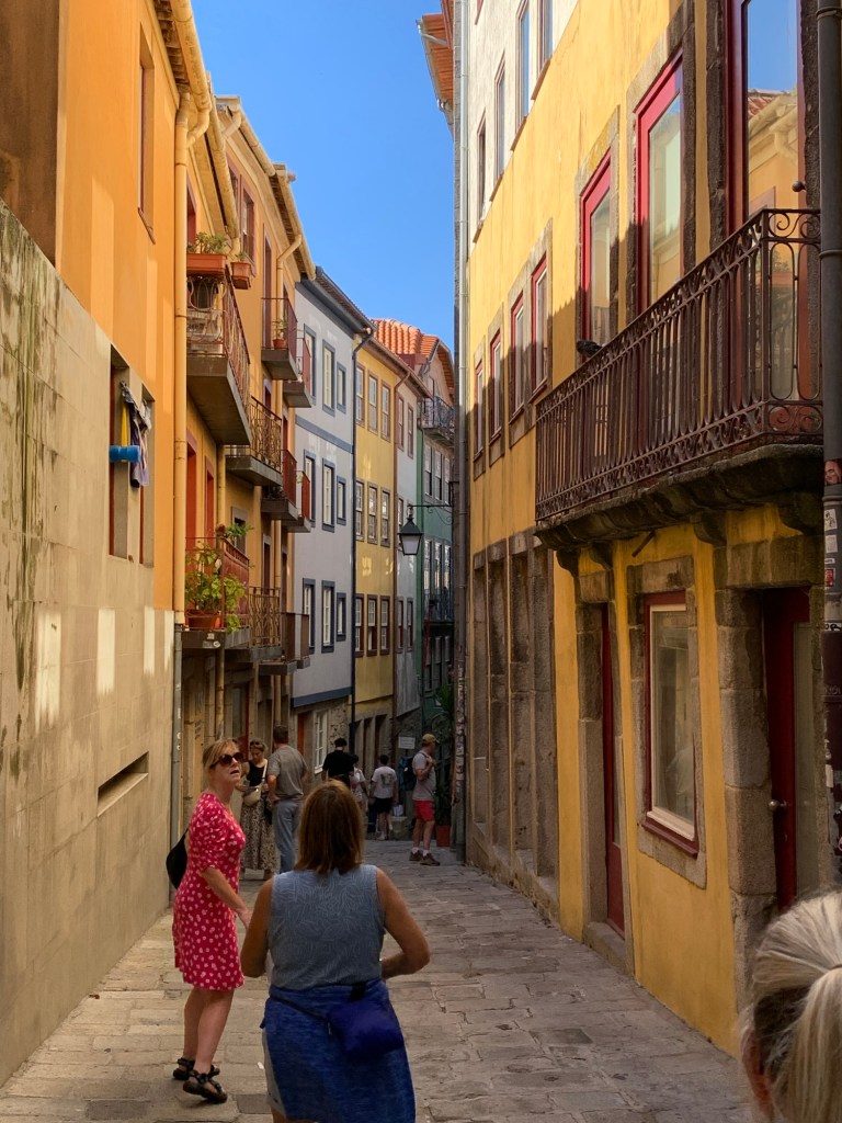 Porto is a medieval port city straddling the Douro River. Consequently, everything slides steeply down hill, and the medieval old town or “Ribeira” is perched into this steep valley, at times cliff, wall. If you are lost in the back alleys and point yourself downwards, you will always find the riverfront and your way. Of course that also means you have to get back UP that hill!