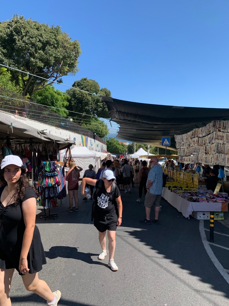 The Feira da Ladra (Campo de Santa Clara), is a flea market that has been occurring in the same spot every Tuesday and Saturday since 1272…..! We did not purchase a single nick nack, used shoe or nannas old tea set. Still it was cool to just wander through.