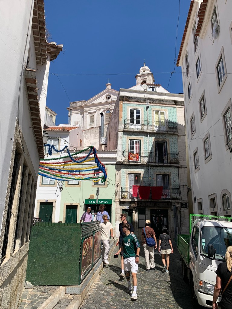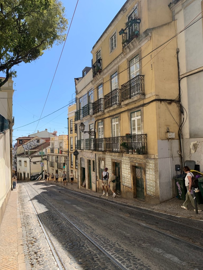 From the flea market, we wandered through the old part of town, and our legs reminded us that they were sick of nasty uphill climbs…. Of which there are many in Lisbon!